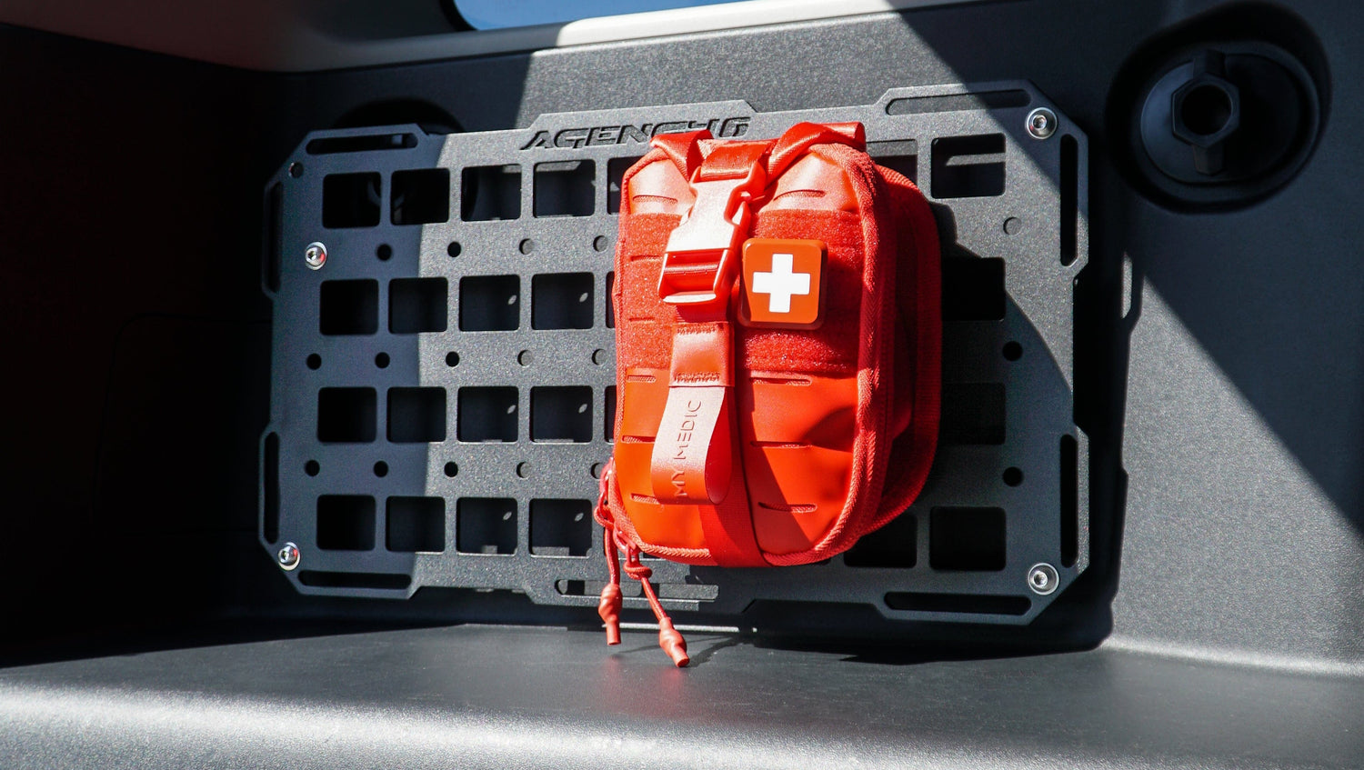 Tired of everything rolling around back there? Want to keep important equipment at the ready? Add organization to your vehicle with the Agency 6 GRIDS panel. This storage solution gives you vertical real estate for mounting a variety of accessories. MOLLE pattern cutouts allow for a range of camping and off-road components to be securely strapped directly to the panels. Slots on the perimeter are ideal for mounting lights, or as additional strap points. Panel includes stainless steel mounting hardware and machined aluminum stand-offs.