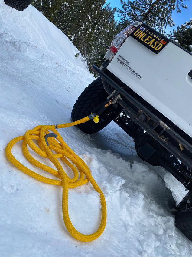 The USA made Spartan kinetic recovery rope is the perfect off-road tool for a safe recovery from mud, sand, snow, and any element that brings your vehicle to a halt. Spartan Ropes kinetic abilities allows the rope to stretch up to 30% under load, transferring the kinetic energy between vehicles for a safer & smoother recovery.